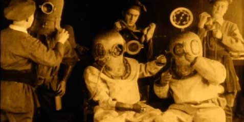 The movie itself was a large part of the problem. Made in 1916, when large-scale feature films were still new in America (Birth of a Nation came out the previous year), 20,000 Leagues is slow, clumsy, and confusing. With its exaggerated, melodramatic performances and overreliance on intertitles, it hits all of the negative stereotypes of silent films. It tells you, through narrative intertitles, what’s going to happen before it does, explaining everything before showing you—if it shows you. And yet, despite being over-narrated, it still manages to be confusing, shoe-horning way too much plot into its eight reels.