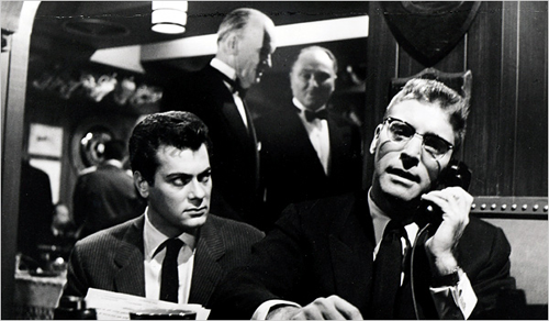 despicable character who happily bathes in the adulation and fear of the people around him. Tonight’s main victim: a whinny Broadway press agent (Tony Curtis belying his reputation as a bad actor), terrified that his career will collapse if Hunsecker doesn’t praise the right client. In addition to everything else, Hunsecker–who’s based loosely on the actual Walter Winchell–has a rather too-close relationship with his kid sister. From a script by Clifford Odets and Ernest (North by Northwest) Lehman. On a double bill with All Night Long, which I haven’t seen. Part of the I Wake Up Dreaming series.