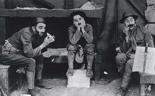 A Shoulder Arms, Pacific Film Archive, Saturday, 8:15. Charlie Chaplin made a very funny war comedy, parodying every aspect of World War I, while real soldiers were