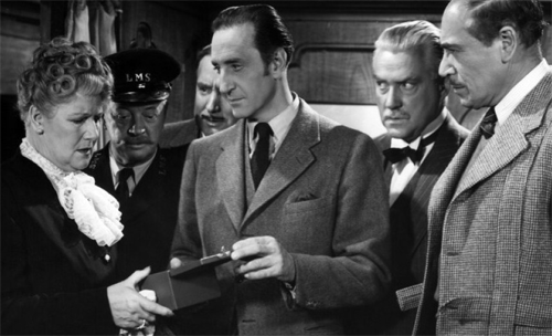 night train while they try to catch a jewel thief who’s not above murder. The enclosed setting of the train, combined with the rumbling of the tracks, adds atmospheric suspense that you usually don’t get in these films. True, the identity of the villain is both ridiculously obvious and totally unbelievable, but Rathbone was such a great Holmes that you can forgive such silliness. On a double bill with a Charlie Chan picture called Castle in the Desert, which I have not seen. For my thoughts on both of these series, see Charlie Chan, Sherlock Holmes, and the Strange Case of the Stereotyped Detective.