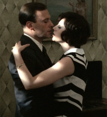While Trintignant plays Marcello as a nervous man who keeps his cards close to his chest, Sandrelli’s Giulia is an open book. She clearly adores her new husband, and doesn’t object in the slightest when he looks up an old professor. In fact, she becomes bosom pals with the professor’s much younger wife Anna, played by Dominique Sanda as a self-assured sex goddess.