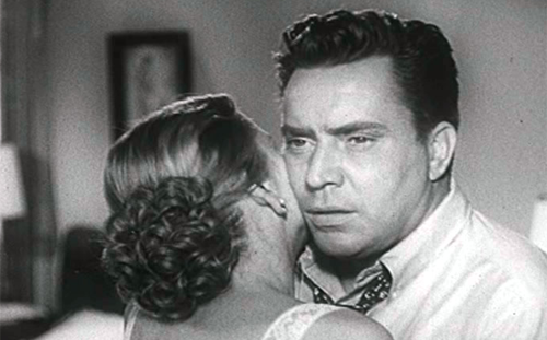 In Los Angeles, he’s married to Ida Lupino (who also directed), and they have a baby. Most of the movie uses that classic noir device, the narrated flashback, to tell us how this came to be.