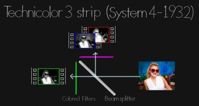 Technicolor’s three-strip format dominated commercial color filmmaking from the mid-1930s through the early 1950s. A special camera recorded each primary color on a separate strip of black-and-white film.