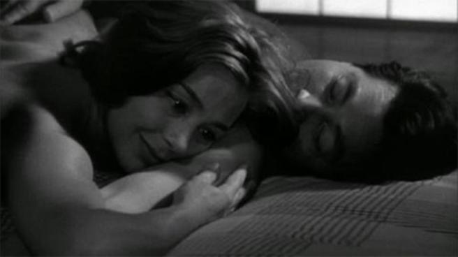 Hiroshima mon amour starts with a couple in bed, presumably naked, locked in love’s embrace. But their talk is not about love–or even sex. They’re talking about the bomb and Hiroshima. He wants to make sure that she has seen everything of importance in that victimized city and understands what it means. (The film was made in 1959. The end of World War II was as close then as 9/11 is to us today.)