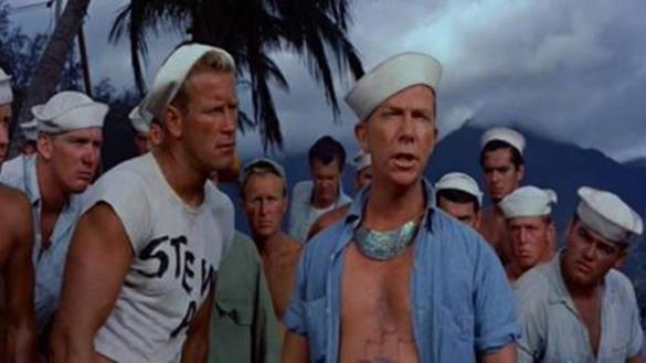 There’s a fair amount of historical interest in the film version of this Rodger and Hammerstein musical, but not much good filmmaking. It was only the third film shot in Todd-AO, and the first after a major format alteration. It has a big song about the evils of racism (risky at the time). But in the end, this tale of American sailors stationed in a paradise that’s about to become a war zone is just plain bland. Neither the songs, the story, the actors, or even the scenery rises above so-so. See my article on big roadshow musicals of the 50s and 60s.
