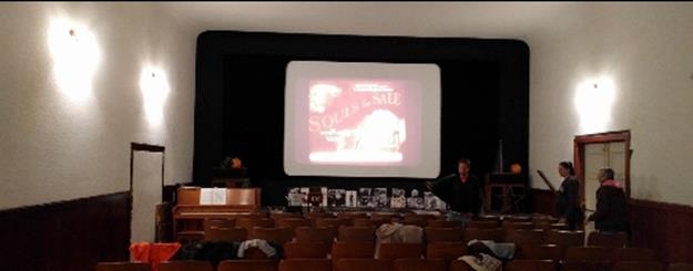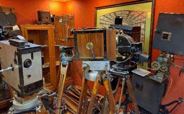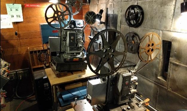 The two 16mm projectors in the projection booth. The blue box in the rear is one of the two 35mm projectors