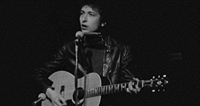 This isn’t really a concert movie. It shows him performing occasionally, but never for one complete song. His greatest musical moment is a performance of “It’s All Over Now, Baby Blue,” played privately in a hotel room.