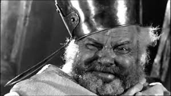 Chimes takes its story, inspirations, and most of its dialog from Henry IV Parts I and II, concentrating on Shakespeare’s ultimate loveable scoundrel, Sir John Falstaff (played, of course, by Welles, himself). Fat, drunken, and duplicitous, Falstaff embraces life and all the joys it provides. His self-serving yet occasionally wise philosophy provide much of the comedy. But age and rejection will turn him into a tragic figure. (A smattering of dialog comes from Richard II, Henry V, and The Merry Wives of Windsor–a comedy Shakespeare wrote to exploit the popular Falstaff character.)