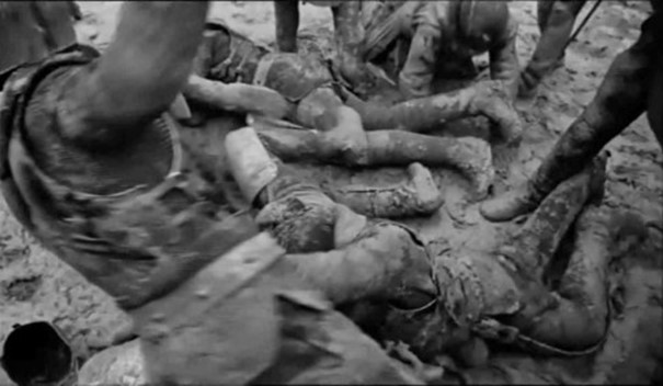 A seemingly large battle, brilliantly edited to disguise the thin budget, makes up the film’s centerpiece. Close-ups of mud and dying soldiers, sometimes in slow motion and sometimes fast, plays against a haunting music score that avoids heroics.