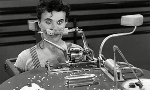 But the big excitement for me was the chance to see Modern Times. I grew up hearing about the wonderful Charlie Chaplin, and especially his very leftwing take on the Depression. Chaplin withdrew his films from American screens before I was born, and he made a rare exception to allow this screening. He would re-release all of his films to American audiences the next year. (Hitchcock did the same in allowing Rope and Vertigo for the marathon. They would not be shown again until after his 1980 death.) And yes, I loved the movie.