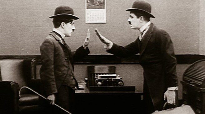 The gags build and land beautifully. Chaplin and a lookalike do a mirror routine, with both wondering if they’re looking at their own reflection (even though the “lookalike” is at least six inches taller than Chaplin). Campbell chases a dancing Charlie around an office, then chases him down an up escalator, so that they’re running like crazy without getting anywhere.