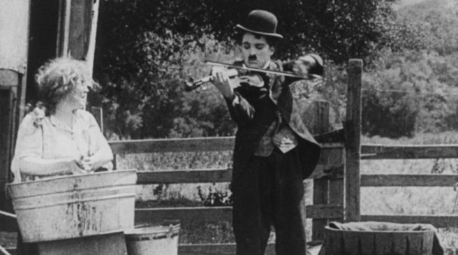 We see Charlie’s shoes and unique walk before we see the whole man. That’s enough; he had the most recognizable walk in the world. Here Charlie is a street musician, playing the violin (Chaplin’s own instrument) for coins in and outside a saloon. He wanders from town to country, where he saves Edna from evil gypsies (even Chaplin couldn’t always avoid racism), then loses her to a younger, more handsome man.