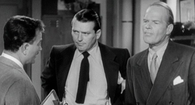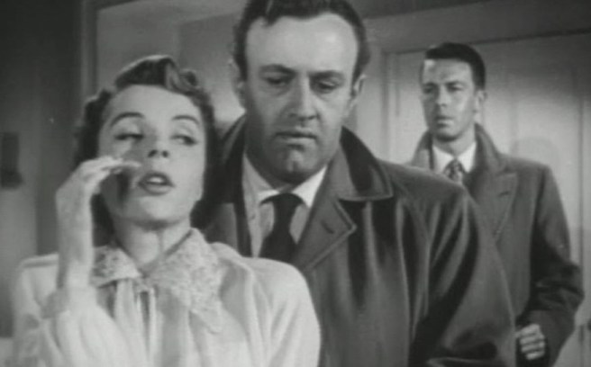 A rich wife (Jane Wyatt – the future mother of Father Knows Best) kills her no-good husband in self-defense. Her police detective lover (Lee J. Cobb in a rare leading role) helps her hide the evidence. But Cobb’s rookie detective brother (John Dall) is on the case, and Cobb soon realizes he’s in trouble.