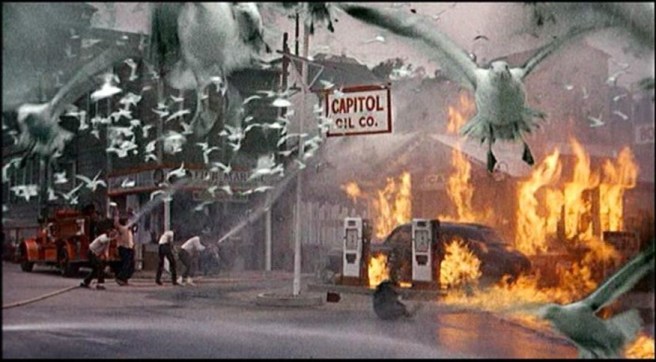 The Birds has another major problem: For budgetary reasons, Hitchcock’s planned ending was never filmed. So the movie doesn’t end; it just stops.