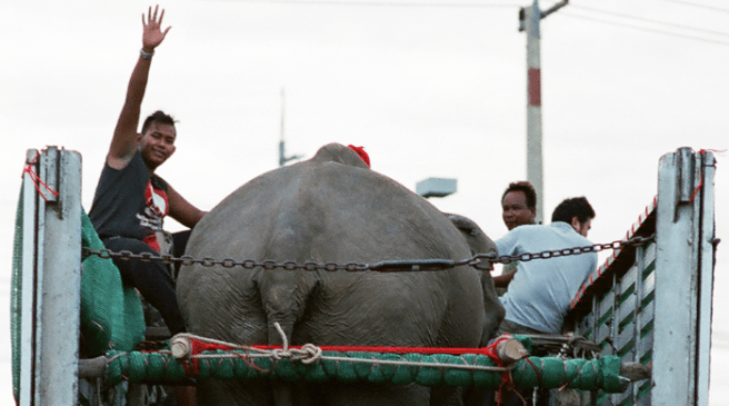 In the film’s strong middle section, Chailert and Bell must transport a 70-year-old, blind elephant across hundreds of miles from a commercial trekking camp to the sanctuary. If you’ve ever had problems getting an angry cat into a carrier for a trip to the vet, you can image what it’s like to put a multi-ton beast, who has known only cruelty from humans, into a truck. And then spend almost 24 hours trying to keep the creature fed, hydrated, and calm.
