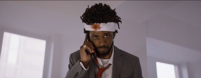 Desperate for money, Cassius Green (Lakeith Stanfield) gets a job as a telemarketer, calling people to sell them crap. Riley comically films these calls as if Cassius is dropping into the people’s homes. He’s lousy at first, until a co-worker (Danny Glover) advises he use his “white voice.” That little change puts him on the road to success.