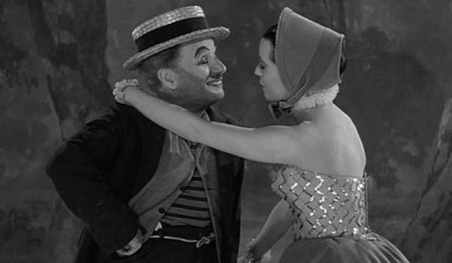 What comedy you’ll find in Limelight takes place on theater stages. In dreams and flashbacks, we see Calvero performing a reasonably funny flea circus routine, and even a clever bit of business with the ballerina.