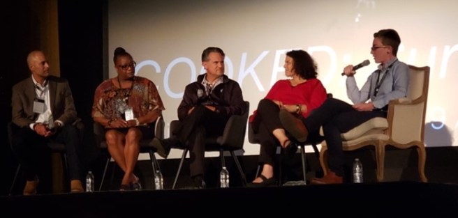 Director Ronit Kertsner did not attend, but two experts came on stage to discuss how stress effects children – a major issue with refugees. They were Amy Weiss of Refugee & Immigrant Services, Jewish Family and Children Services, and Jessica Trubowitch of JCRC Public Policy and Community Building. Some highlights, edited for brevity and clarity: