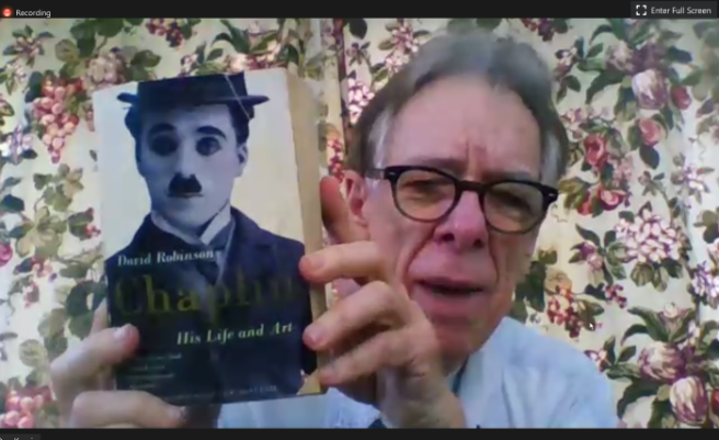 I started my viewing at 10:00am on Zoom with a discussion with author and Chaplin expert David Robinson. His biography, Chaplin: His Life and Art, has been called definitive (admittedly, I haven’t yet read it). He has also written Charlie Chaplin: The Art of Comedy, Chaplin: The Mirror of Opinion, and I don’t know how many other books. He also wrote one at Buster Keaton.