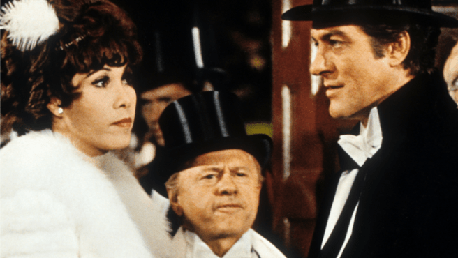 Reiner and Aaron Ruben clearly studied the history of the great silent comedians before writing the screenplay. Dick Van Dyke, who never hid his love of Chaplin, Keaton, Lloyd, and especially Stan Laurel, plays the fictitious comedian Billy Bright. Van Dyke, a great physical comedian in his own right, is brilliant in the black-and-white, silent movies within the film. But in the serious scenes he’s acceptable but not exceptional.