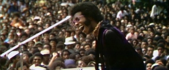 If you go to see this concert documentary only for the music, you’ll be disappointed. I don’t think there’s a single song played from start to ending without interruption. The film is much more about race issues than music. It’s primarily a record, shot on primitive, 1960s video, of a free concert in Harlem just weeks before Woodstock. But each act is interrupted with someone talking about the artist, or the African American situation then or now. But the musicians, who include Stevie Wonder, Nina Simone, Sly and the Family Stone, Mahalia Jackson, and B.B. King, are fantastic. Just remember that the music takes backstage to the issues.