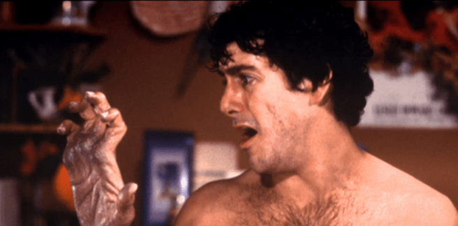 Writer/director John Landis lightly laced sardonic humor into a terrifying, suspenseful, and yet romantic version of the werewolf myth. A young, nice, Jewish American boy vacationing in England is bitten by a werewolf, and from then on, whenever the full moon appears, he turns into a violent monster. Along with the humor and frights, there’s a sweet love story and a good doctor trying to find the awful secret. Rick Baker’s amazing makeup design forces you to feel the extreme pain of your body turning into something else. Meanwhile, the protagonist’s dead friend keeps coming back to talk to him; each time looking more decomposed.
