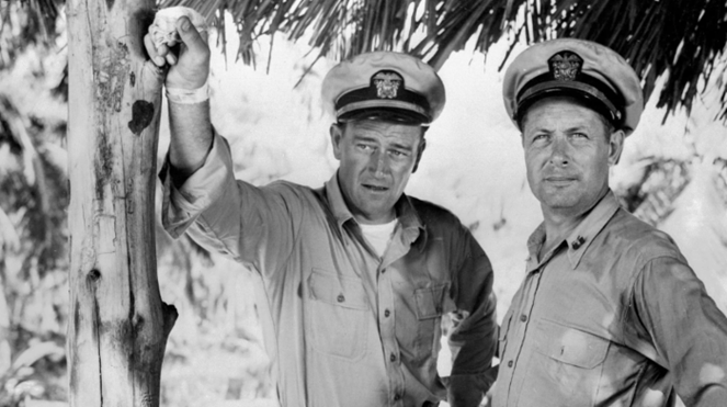 The Navy very much wanted to make this film, and especially have it made by Captain John Ford USNR (yes, that John Ford). Much as I like the picture, I don’t understand why the Navy thought it would be such a great recruitment tool. Death stalks everywhere. Most of the sailors are left behind to be captured or killed by the Japanese. Yes, there’s fun high jinx, comradeship, and even a romance with a nurse who’s all-business when working (Donna Reed in a remarkable performance). Robert Montgomery and John Wayne play the officers trying the usefulness of small, wooden boats at war.